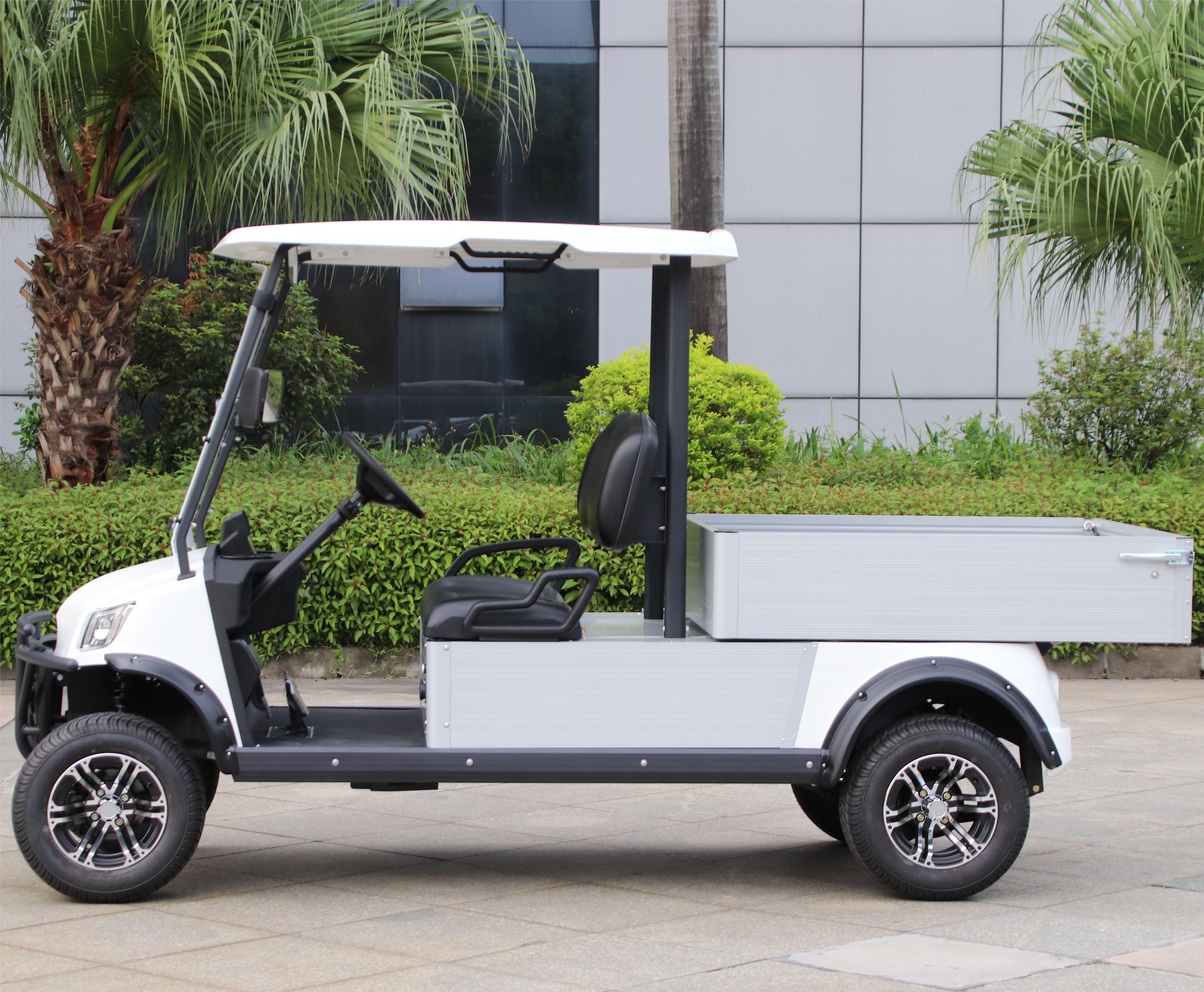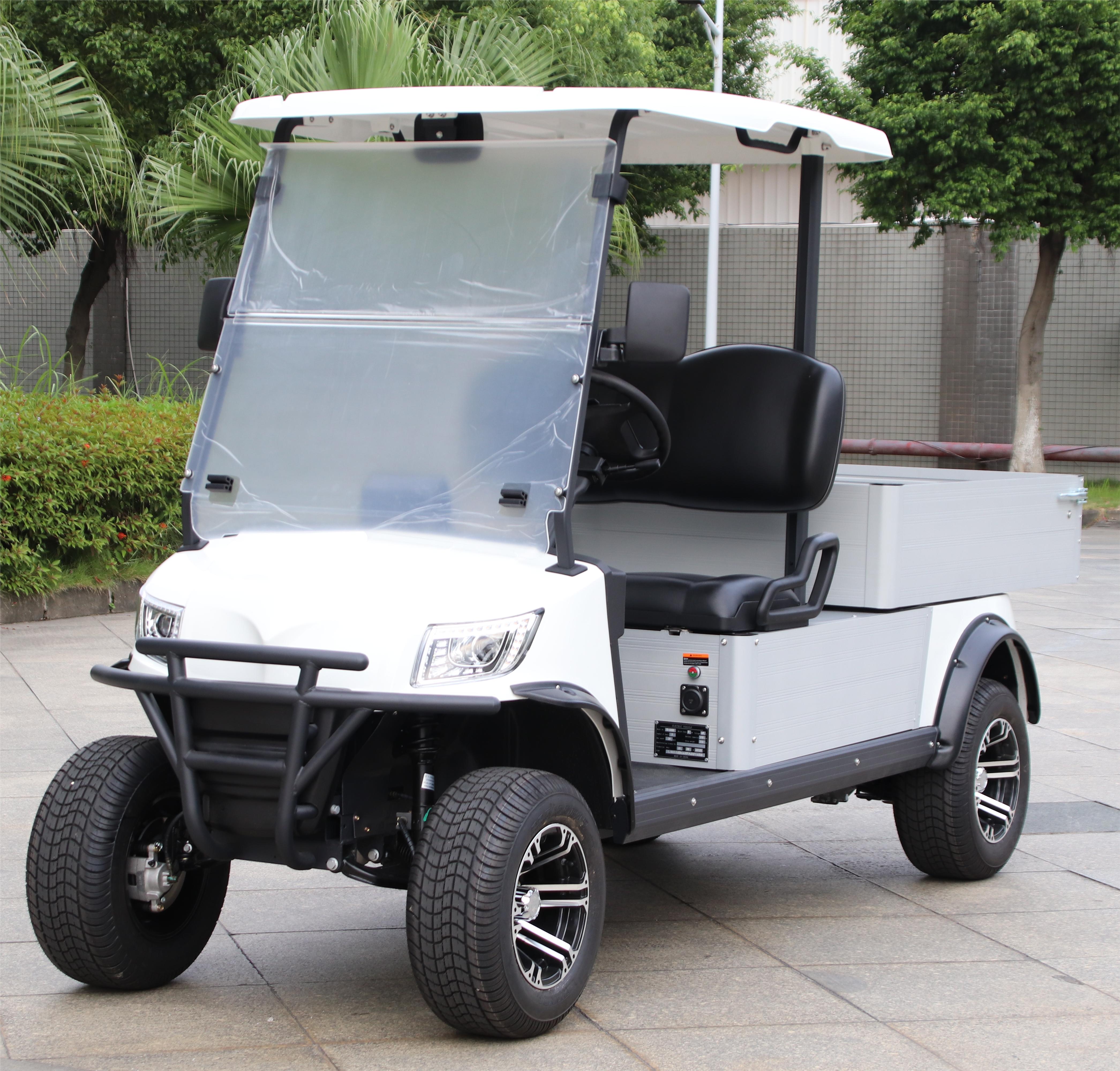 | Optional parts | 1. Battery: Available for lead acid battery; 2. Caddy Cooler; 3. Ball washer; 4. Side view mirror and rearview mirror; 5.Seat belts(Two points retractable or three points retractable); 6. Rain Cover; 7. Sunshine Curtain; 8. 10 inch/12 inch aluminum alloy rim tire; 9. 7 inch Speedometers with back-up camera; 10. Rear Cargo box; 11. Four Wheel Hydraulic brake system; 12. Stereo System (Bluetooth Control Player + 2 Speakers) or sound bar. | ||