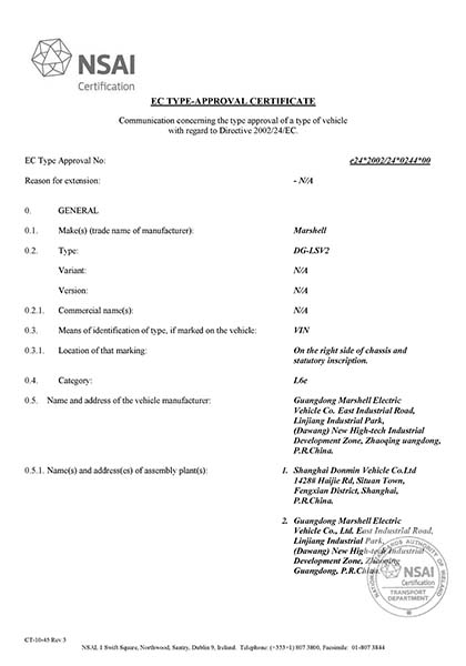 CE Certificate for Golf Cart